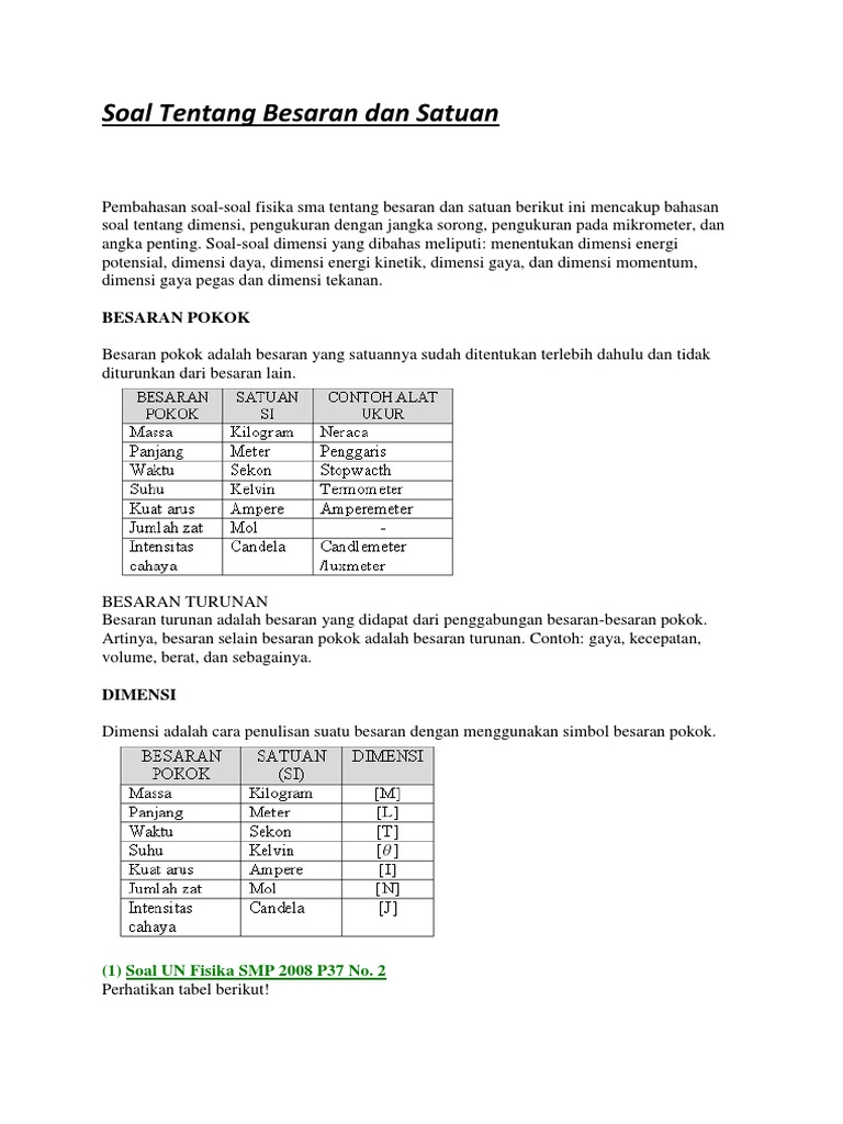 / Contoh Soal Essay Besaran Dan Satuan Beserta Jawabannya Kelas 10 - Rangkuman 30 Contoh Soal Besaran Dan Satuan Pembahasannya : Gaya adalah besaran dan newton adalah satuannya besaran merupakan segala sesuatu yang dapat diukur.
