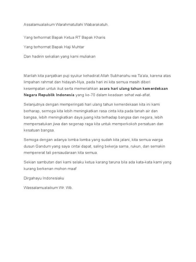 Contoh pidato sambutan ketua panitia 17 agustus hut ri ke.
